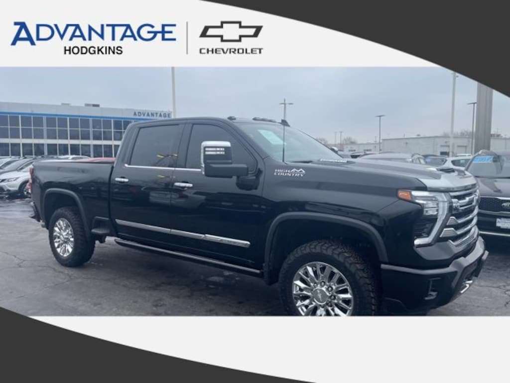 Recent Arrival! Clean CARFAX. Black 2024 Chevrolet Silverado 2500HD 4D Crew Cab High Country Duramax 6.6L V8 Turbodiesel Automatic 4WD At Advantage Chevrolet of Hodgkins we work hard to provide our customers with everything they need when purchasing a vehicle. We have a Great Selection, Great Prices, and an award winning Service Department. We stock over 1,000 new and pre-owned vehicles at all times. Our finance professionals work with over 34 different lenders and they have the expertise and knowledge to accommodate our customers, including those with previous financial troubles. We want our customers to feel at home when they are in our showroom, so we offer comfortable lounges complete with snack machines, wireless internet and TV. We know your time is valuable. We are sure you will find our site a fast and convenient way to research and find a vehicle that's right for you. If we can be of any assistance while visiting us online, send us an email and we will promptly reply.